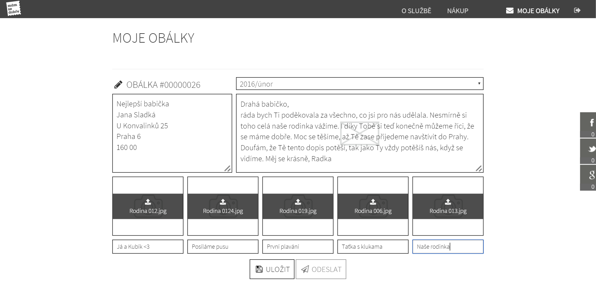V sekci Moje obálky se Ti po zaplacení zpřístupní požadovaný počet obálek.